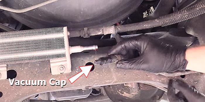 Refill the fluid reservoir with new power steering fluid and reinstall the cap,
