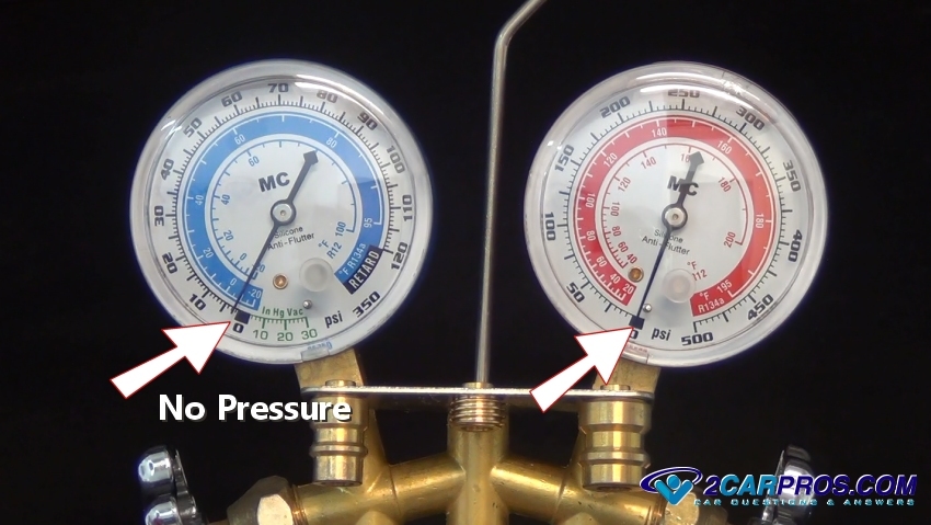 While the gauge valves are still closed, and once the refrigerant source has been opened, the gauges will respond with an equal readings on both high and low side letting you know that refrigerant is present and ready to be installed. This is static pressure which will vary depending on the outside temperature. The warmer the weather the higher the reading will be, this is normal.