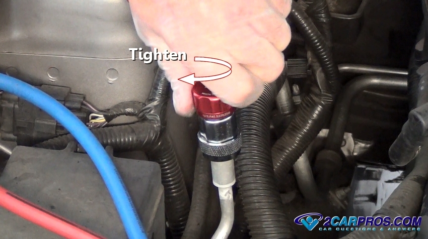 Caution: Do not loosen any air conditioner components/hoses while under pressure.