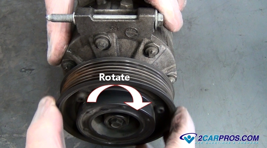 Once the old AC compressor has been removed, turn the pulley or clutch to determine its condition by checking for rough movement or grinding noises. If present, this sometimes can mean the system is contaminated with foreign metal or seal material debris from the failed unit which can plug the orifice tube or expansion valve. In these cases the system must be flushed by using an a/c system flush kit which can be purchase from Amazon or the local parts store.