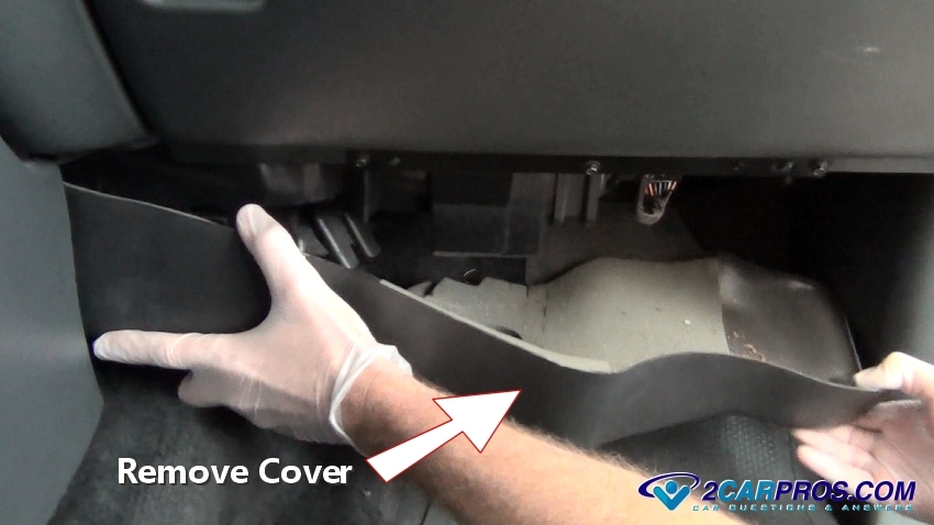1. Most of the time a panel or two will need to be removed to complete the job. Using a small socket and ratchet remove the mounting bolts that hold the under dash plastic cover on the passenger side, these screws can be in obscure places so look around for them.