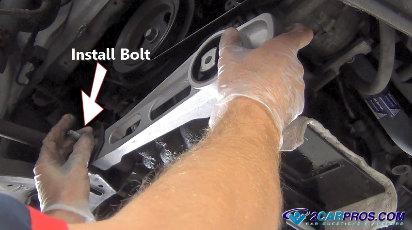 Insert the frame to mount bolt by hand which will hold the engine mount in place.