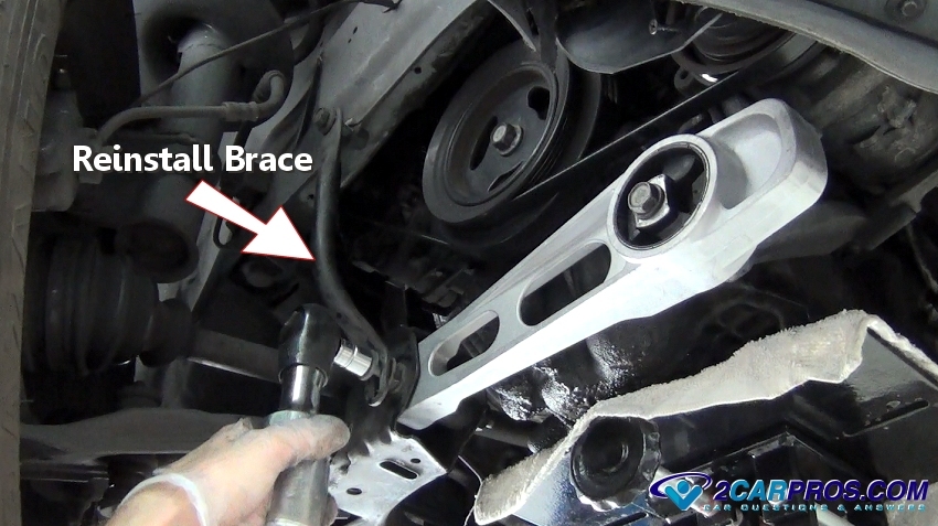 Reinstall any brackets or braces that were removed while replacing the mount.