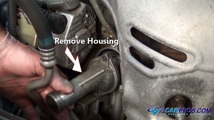 Reinstall the housing onto the block or intake manifold, install mounting bolts
