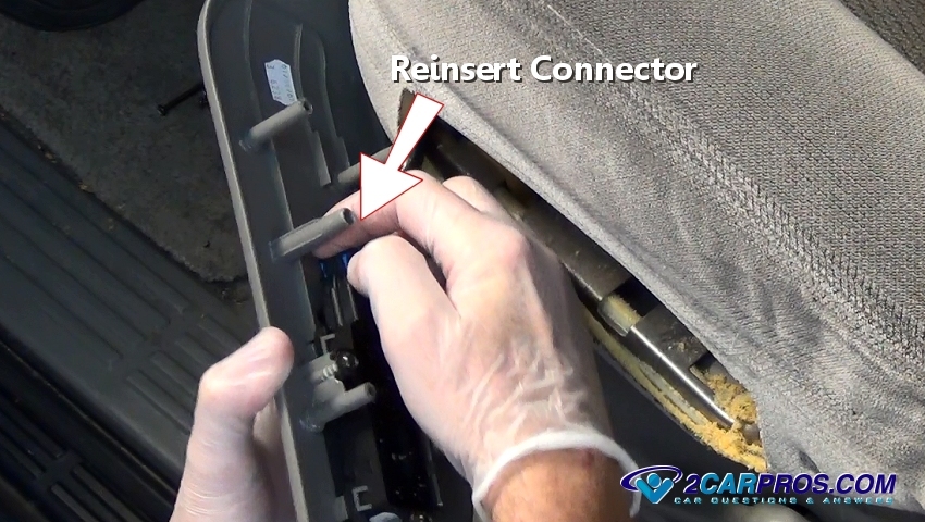 13. Once the job is complete, work the switch in each direction to check its operation and you are all set. If you have additional problems or questions with how to replace the seat control switch or if the switch is not working, our experts will help you for free.