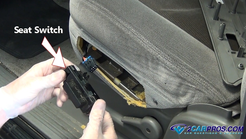 1. Start by identifying the seat switch that is not working, which should be on the outward side or front of the seat bottom. This switch may have additional controls beside the bottom cushion and seat position control.