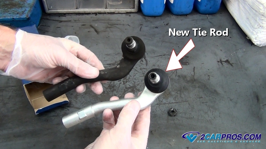 grasp the tie rod and turn either clockwise or counterclockwise depending on right