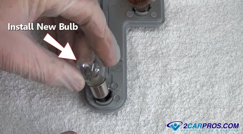 Gently install the new bulb by inserting (push down) and twisting it clockwise