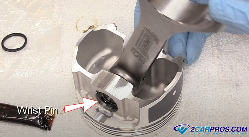 A wrist pin is used to serve is a pivot while attaching the piston to the piston rod. These pins can seize not allowing the isolating motion of the piston while traveling inside the cylinder bore. When this happens a knocking noise will be produced as the piston is slapping (knocking) against the cylinder wall.