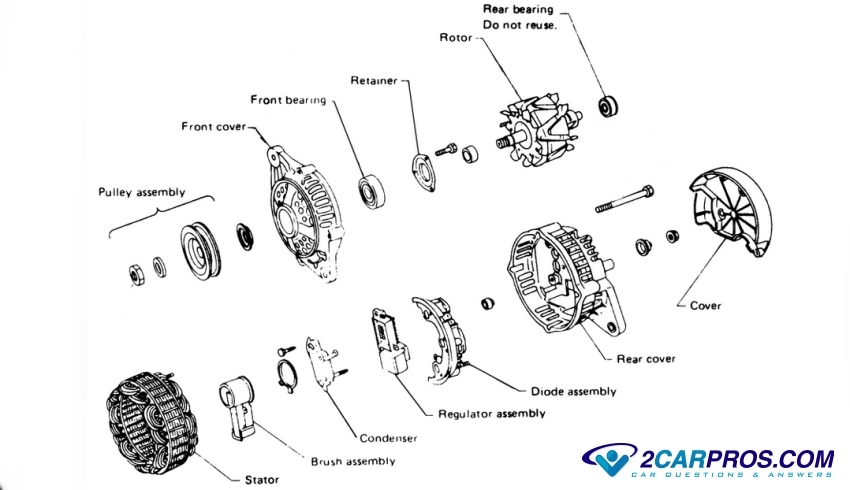 There is a rectifier plate which has six diode assemblies that help convert alternating currant (AC), which is the voltage "type" the alternator produces, and changes it to DC voltage which is needed to run the car and charge the battery.