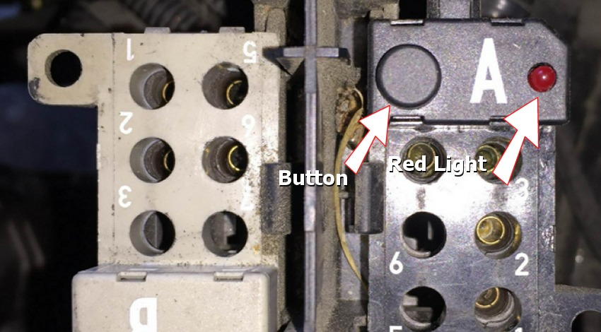 Remove the protective cover and locate a button next to a red led light, start the code gathering procedure by turning the ignition key to the on position without starting the engine, push the button down for three seconds.