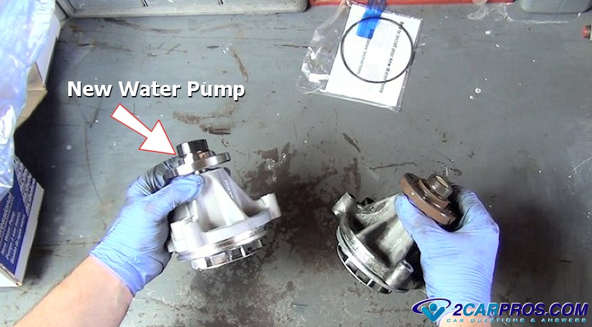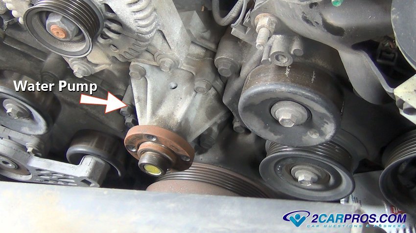 A water pump is bolted to the front of the engine block or timing chain cover and is driven by a serpentine belt, timing belt or timing chain which you should consider servicing at the same time. A water pump and coolant pump are the same thing, the following guide is performed on a rear wheel drive vehicle.