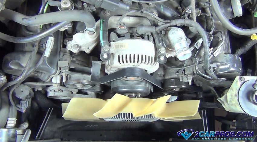 A cooling fan may be connected to the water pump, some cars use an electric fan