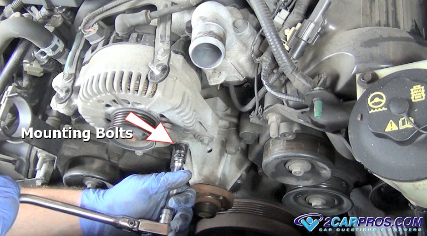 pulley must be held in place to remove the mounting bolts which is done by wedging