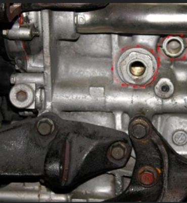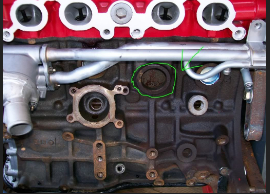 I am attaching the info below but another way to find this is to fill the cooling system with water and track when it is leaking. Clearly it is going to be pouring out of this hole so you will get a pretty good idea pretty quickly as to where it is.