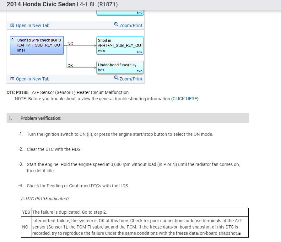 P0135 : A/F Sensor (Sensor 1) Heater Circuit Malfunction