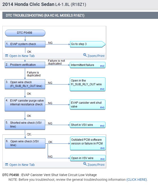 P0498 : EVAP Canister Vent Shut Valve Circuit Low Voltage