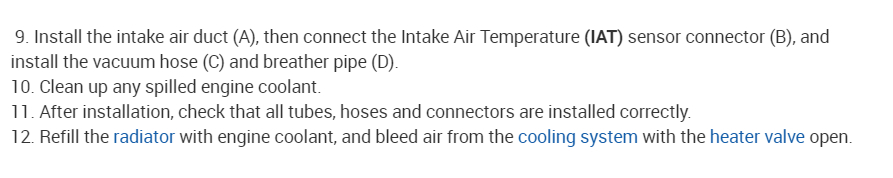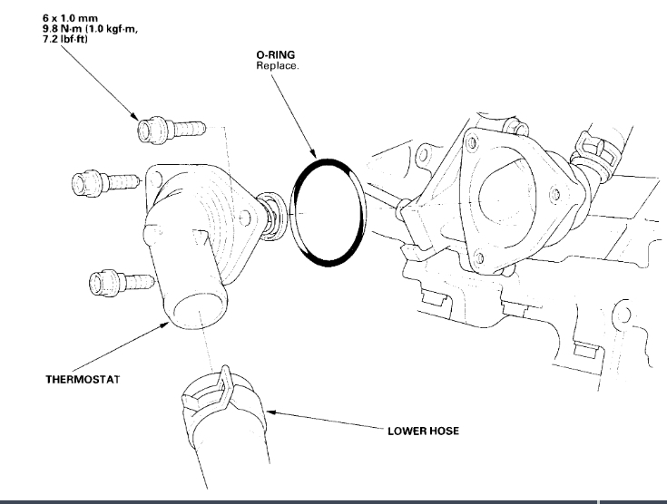I am working the vehicle listed above Vtec. I am changing the thermostat and the thermostat housing. Also I removed the plenum for the intake to gain access to the thermostat housing. I would like the procedures from the shop manual to remove and replace the thermostat and it's housing along with torquing the intake back down. (2 bolts and 3 nuts I believe). I am also if there is anything to be careful about when putting the metal water bypass pipe back into the new plastic thermostat housing. Thanks. Any manual steps/ procedures to help me re install the thermostat and the thermostat housing along with the intake plenum would greatly help. Thanks in advance.