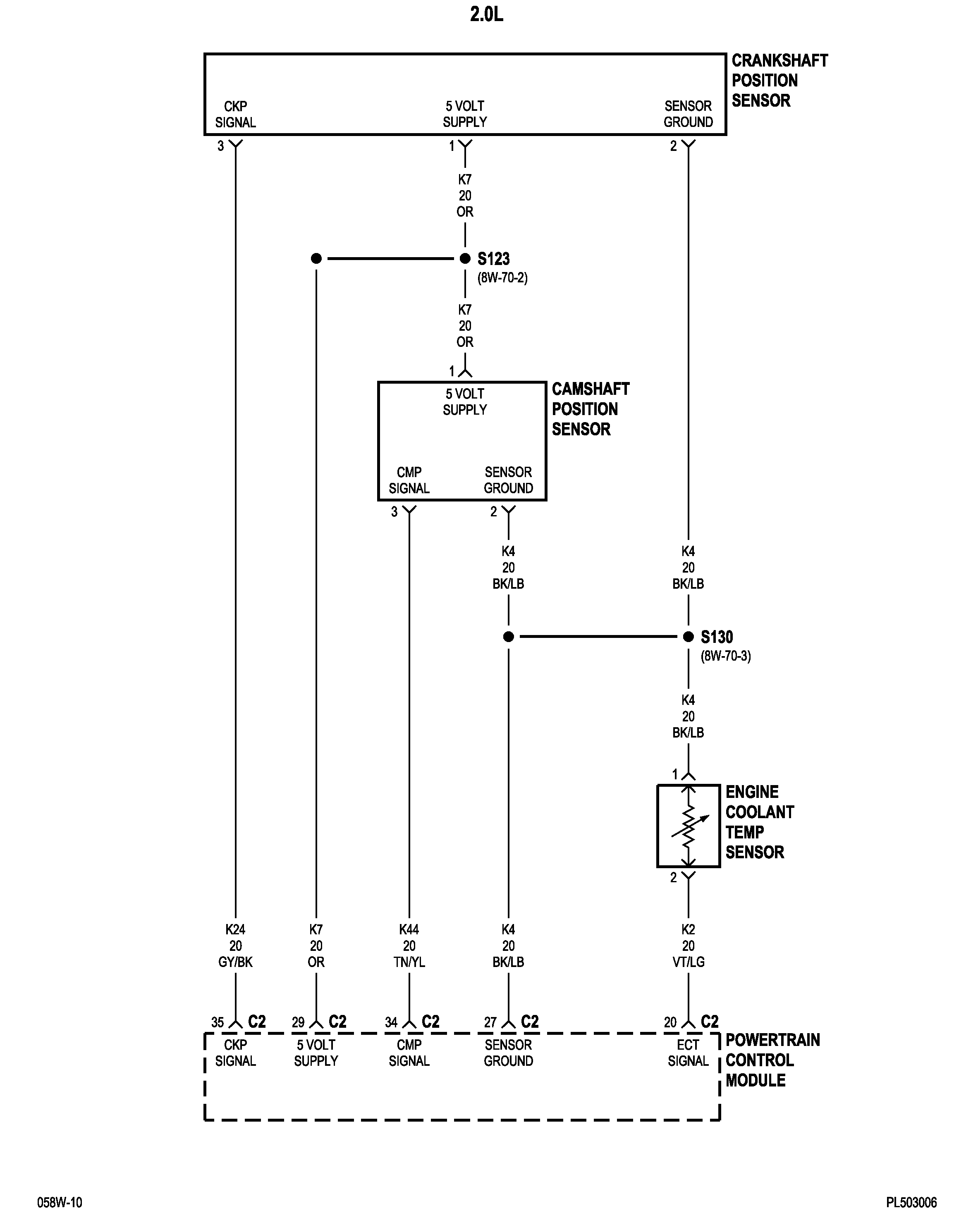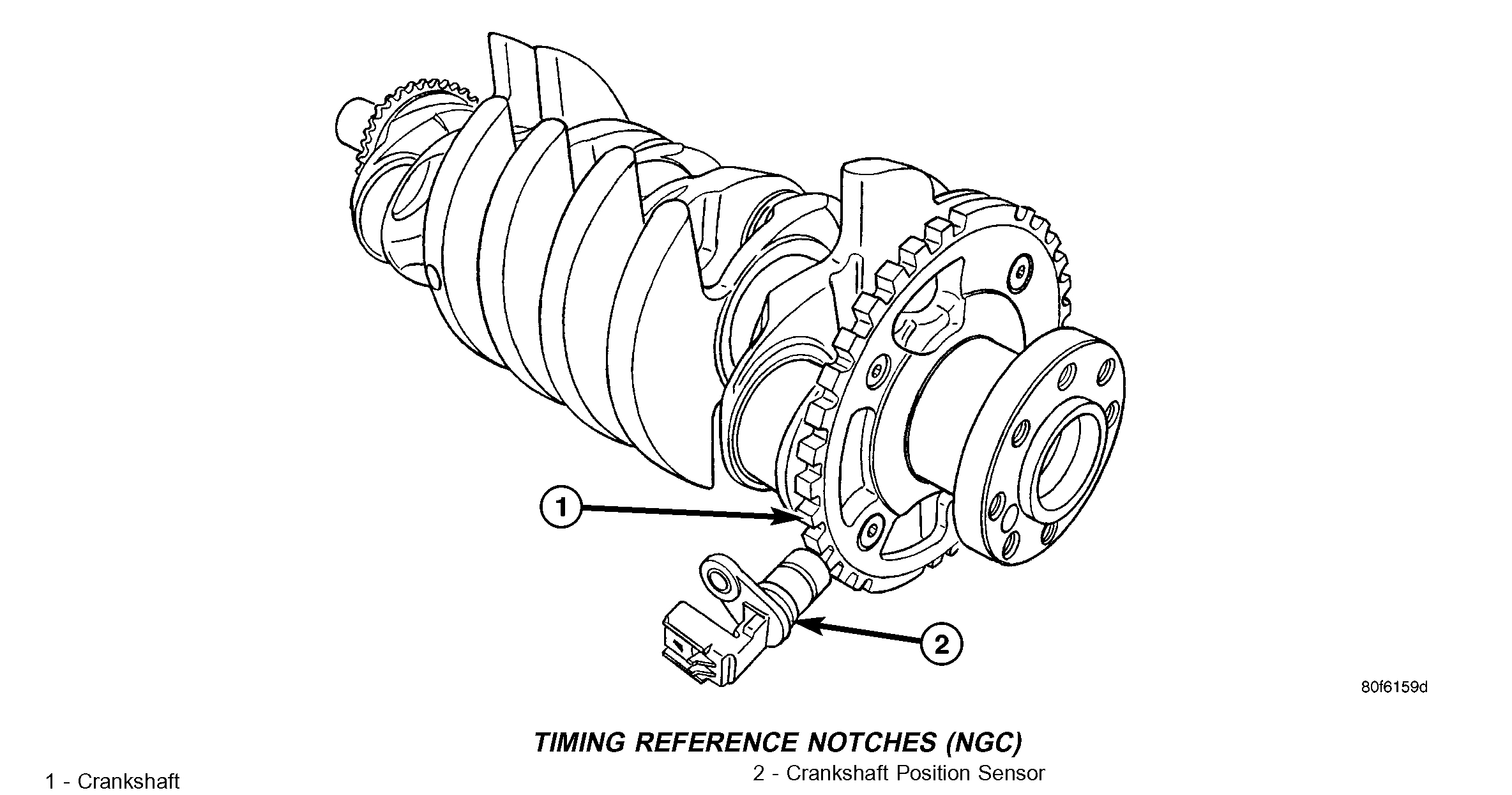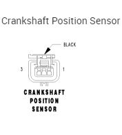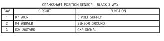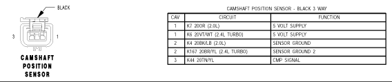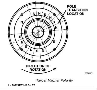 On 2.0/2.4L engines a target magnet attaches to the rear of the camshaft and indexes to the correct position. The target magnet has fourteen different poles arranged in an asymmetrical pattern . As the target magnet rotates, the camshaft position sensor senses the change in polarity . The sensor output switch switches from high (5.0 volts) to low (0.5 volts) as the target magnet rotates. When the north pole of the target magnet passes under the sensor, the output switches high. The sensor output switches low when the south pole of the target magnet passes underneath.