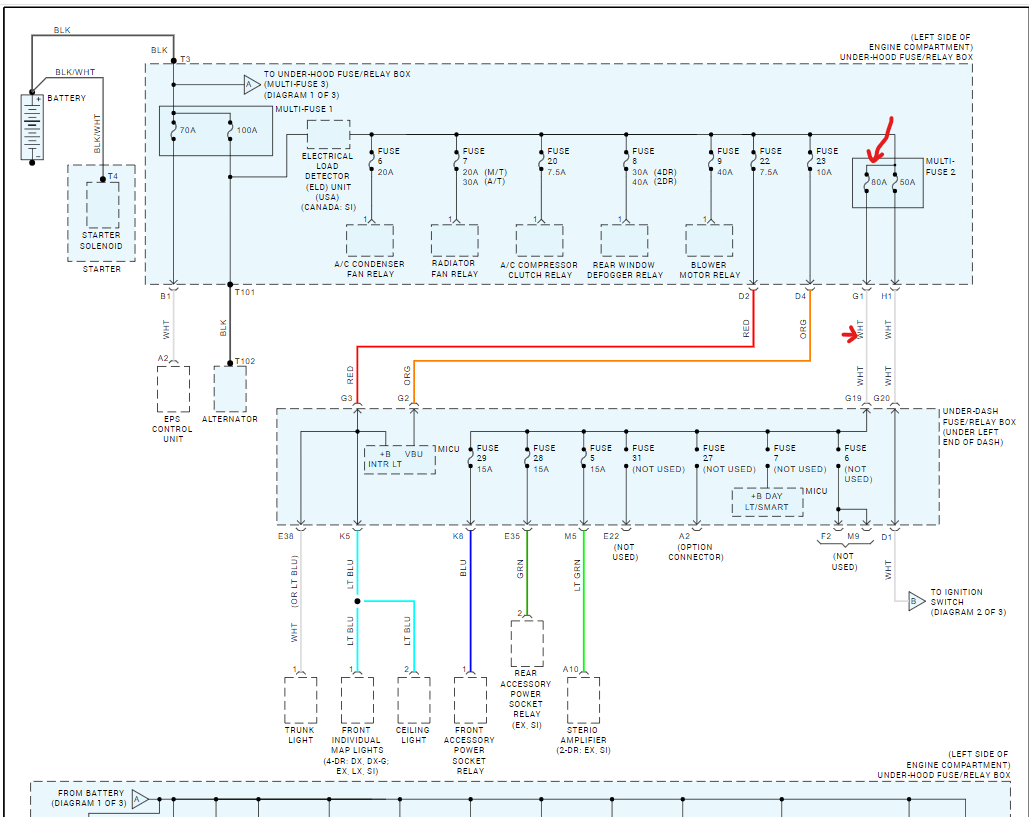 The battery goes dead when shut down after a few hours. Traced the problem to a circuit for heated seats it doesn't have. Removed the fuse and stopped the bleeding. The circuit is hot leading up to the fuse but doesn't make sense. Why keep the circuit for heated seats live all the time? It would drain the battery pretty quick if you forgot to turn them off when the car was shut down. When testing the circuit with a voltmeter, the voltage is all over the place, like hot one moment, then not the next. From the schematics I can find, the circuit is fed by the 80A Op fuse/circuit from the fuse box under the hood that also appears hot. So, I might have 2 problems. One is I am getting juice on the load side of the 80A Op circuit to the fuse box in the cabin that should be dead. And two, power is shorting out somewhere on the load side of the power heated seat circuit where there should be no wiring, or perhaps wiring that is present, but not connected to anything. Does anyone have experience with this issue? I kind of know what I need to do next, but I really don't want to get into trying to trace and rip apart that wiring if someone has dealt with this before on the Honda Civics.