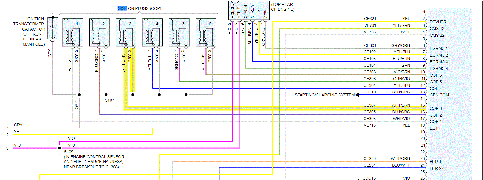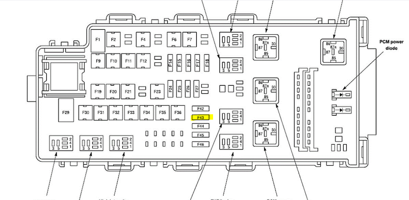 I attached and highlighted the wire to the PCM (left rear of eng compartment). Also, the gray wire goes to fuse 43 in the battery junction box. See pic 2.
