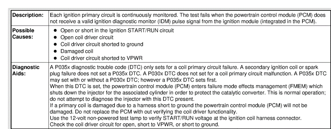 JF: Integrated Ignition Coil On Plug Coil A Through J Failure