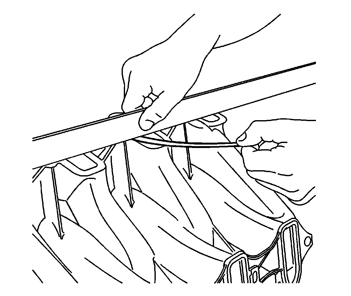 2.  Insert a feeler gauge between the intake manifold and the straight edge. An intake manifold with warpage in excess of 3 mm (0.118 in) over a 200 mm (7.87 in) area is warped and should be replaced. Do not replace intake manifolds with warpage that measures less than 3 mm (0.118 in) over a 200 mm (7.87 in).