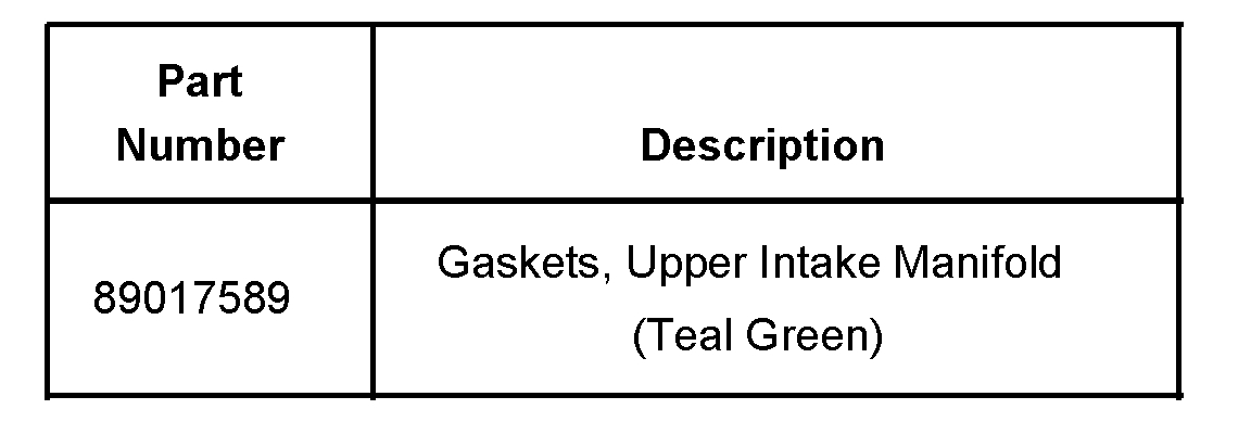 Replace the upper intake manifold gaskets with the teal green gasket material, P/N 89017589.