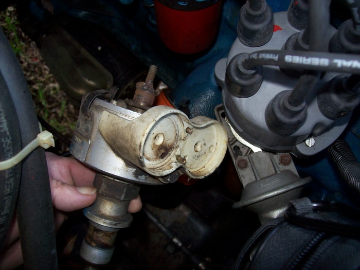 THE ONLY OTHER EXPLANATION I COULD HAVE FOR THE DISTRIBUTOR IS, THE ROLL PIN SHEARED, IT SPUN THE DIST. GEAR 180 DEGREES, THEN IT "STUCK" AT THE OTHER SIDE OF THE PIN HOLE