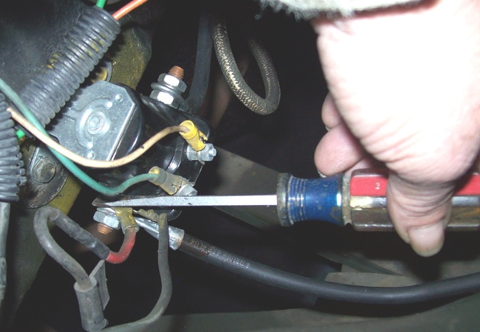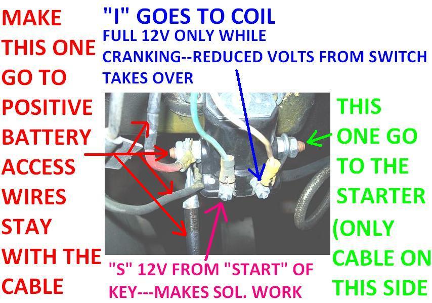 JUST FOR INFO--THE LITTLE STUD ON THE LEFT IS "S" TERMINAL ("C") TURNING THE KEY TO "START" MAKES THE IGNITION SWITCH SEND 12 VOLTS TO THE "S" TERMINAL, WHICH ACTIVATES THE SOLENOID---THEN THE STARTER TURNS OVER