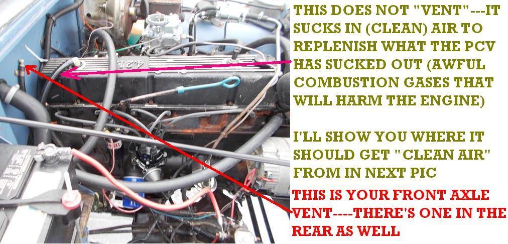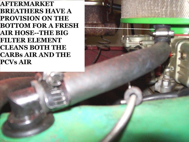 THE "BAD" AIR FROM THE PCV IS SUCKED INTO THE CARB