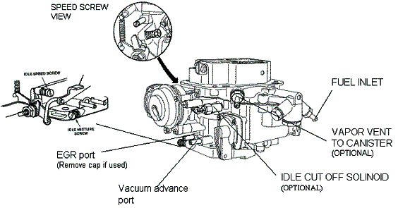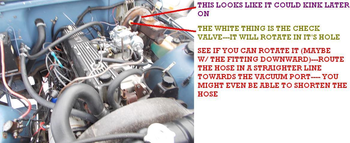 so the engine runs and it idles at around 700 maybe 650 and if I idle it down any more and the idle screw falls off the little cam the engine dies. so I screw it back in to where the idle screw just hangs on the end of the cam and it runs ok. then I backed off the curb idle screw to get the rpms as low as possible. I just duct taped the vacuum pipes coming out of the carburetor. have the pcv valve going to the brass fitting coming out of the intake manifold on its way to the egr valve. put the little hose on the egr valve to the little thing on the intake manifold with the 2 plastic pipes sticking straight up. then I put one of the front vacuum pipes on the carburetor on the same little valve with the 2 plastic pipes. the other vent from the rear of the valve cover just hangs out on the passenger side of the engine venting into the air. the 2 pipes on the front of the carburetor where the air horn is just don't have any hoses going to anything.