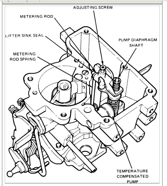 With throttle valve seated in bore of carburetor, press down on upper end of diaphragm shaft until it reached its bottom position. The metering rod arm should now contact the pump lifter link at the outer end nearest the springs. Adjust by bending the pump connector link at its lower angle.