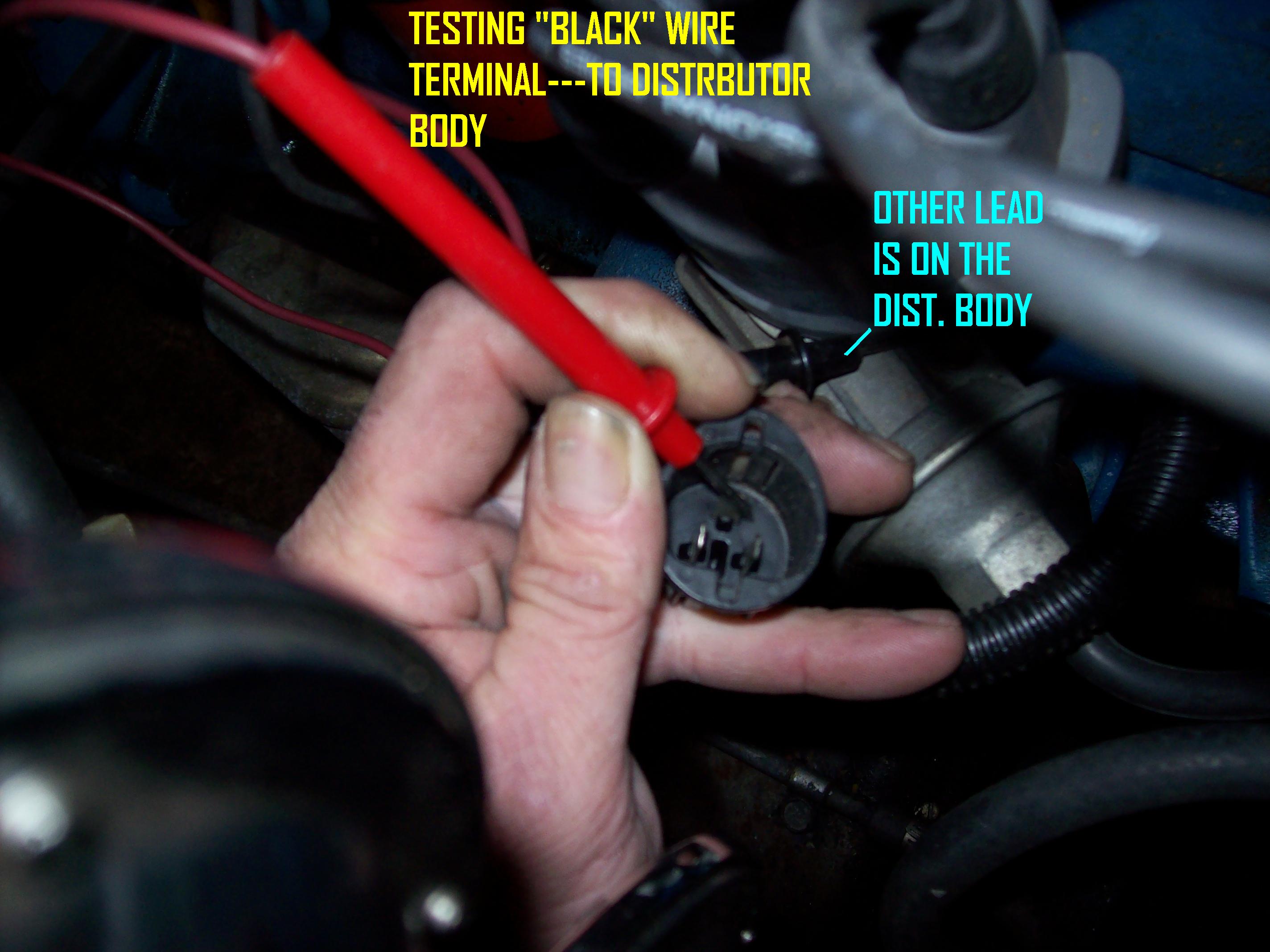 IN the ignition wireing harness there is are 3 wires that connect into 1 wire,don't know colors,but they shorted out on the valve cover. I dont have any spark now. I have replaced ignition coil,ICM,EEC(main computer), and even the distributor and still no spark. I NEED HELP!!!!!