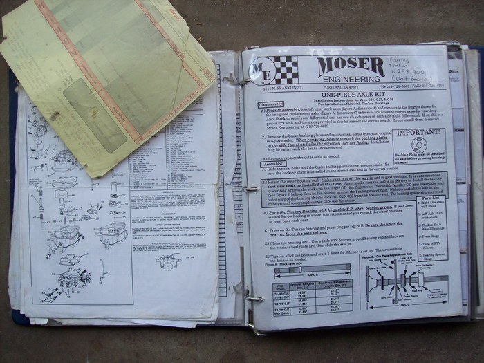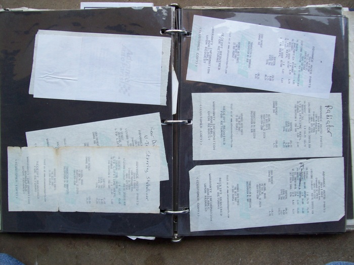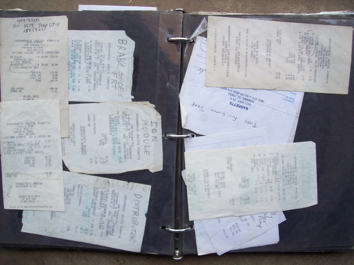 Here's a small sample my CJ5 warranty receipt book (1 for each vehicle)--mostly lifetime, 1 year and others, keeper stuff, like the part #'s, of my engine rebuild (like push rod lengths, etc. They can never tell me they cannot find it, or I'm in not in the system. I copy all of the "Fading Thermal ones", and staple the original behind it...............90% of my CJ5 has a lifetime warranty! I never let them keep a receipt, I let them copy for their use! I do have some old ones! Examples: Radiator, water pump, master cylinder, headers, plug wires, ignition module, starter, alternator, fuel pump, distributor, 3 sets of drum brakes (same for all axles, I keep a spare set at home, and keep a spare fuel pump, coil, ign. module, in the Jeep for me or another broke down Jeeper! (or Ford))--That's not all, there's more! I seldom have to buy "Normal Breaking Parts" they're under warranty!--The Medic