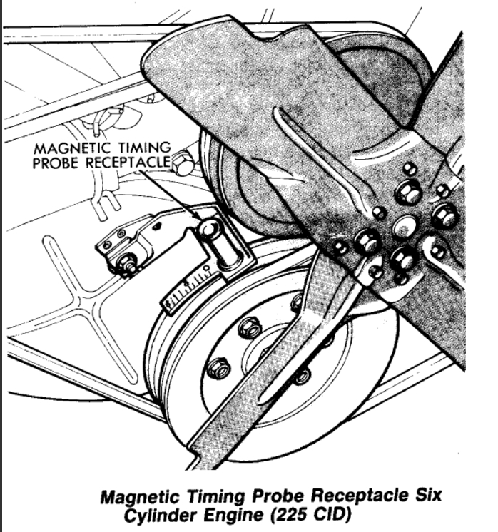(1) Connect a suitable Power Timing Light to number one cylinder (refer to equipment manufacturer's instructions for correct connecting procedures) or a suitable magnetic timing unit (use a 1O°offset when required).