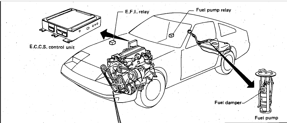 Where is the fuel pump relay located in a 1986 Nissan 300zx Non turbo?