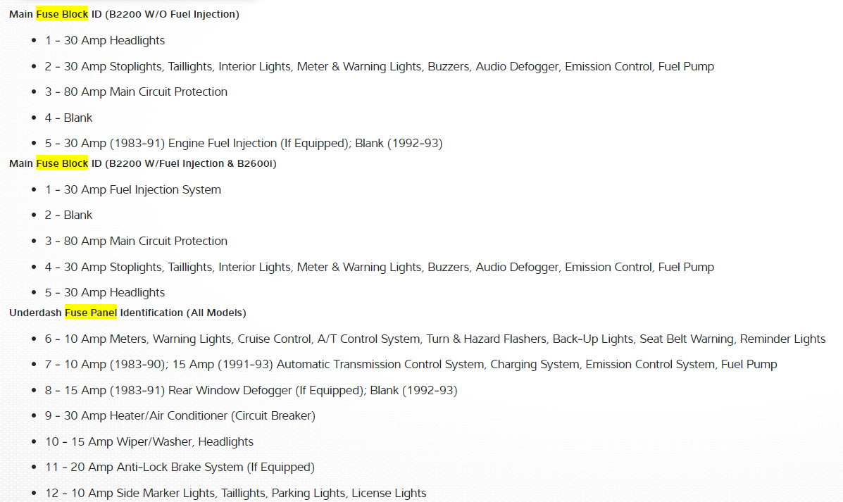 i have a 1987 mazda b2000 and my turn signals do not work, but my hazards do. i found the hazard light flasher, but not the turn signals flasher. Do they both run off the same flasher? i was told yes but they have different fuses. Are the fuses located in the flasher or where? Where could i go to see an image of where this is located or a video?