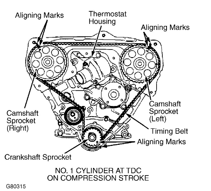 On most old Nissan V-6's, the timing belt will have three lines printed on the non-cogged side of the new belt. Two lines are lined up the cams and the other is for the crank gear. The cam gear marks should be pointed straight up at TDC. You may have to try lining everything up a couple of times between the belt and the gears, but the belt will only go on one way where the lines will even be close to matching the marks on the gears. What you are trying to do is to get the correct number of cogs of the belt between the marks. Hope that helps.... alot of the V-6's of that era were non-interference engines, but I'd check to make sure and turn the engine by hand first dotted line should be on the passenger side cam shaft. solid lines are crank shaft and diver side cam shaft. see pic