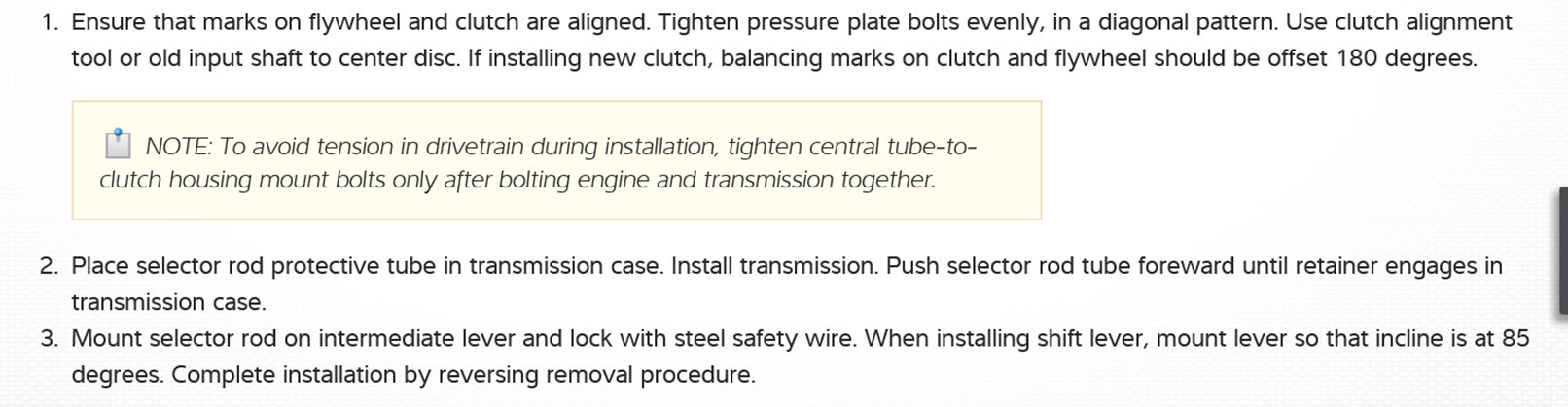 as long as it slides in ok you should be ok. see install instructions in pic. make sure to tighten tube bolts after eng/trans together. unfortunately we have no torque specs.