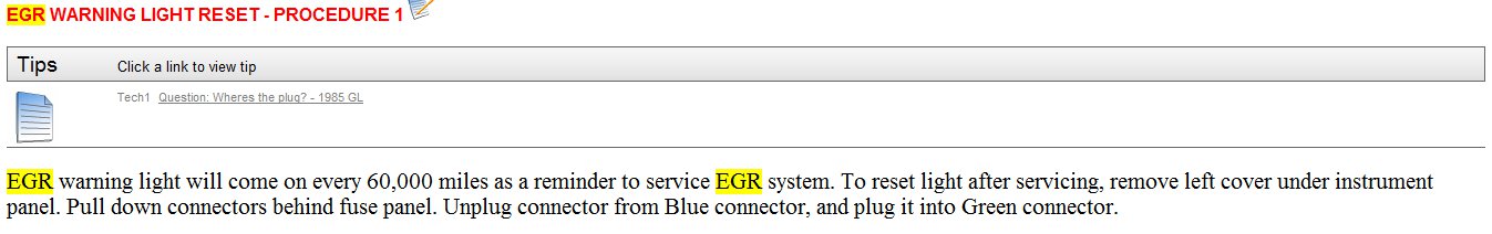 Otherwise, I am attaching the instructions, which indicate wire colors, for resetting the EGR light.