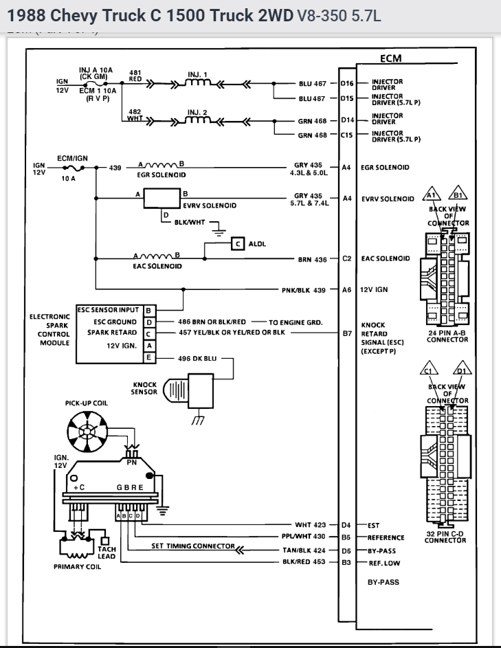 I have the truck listed above 350 TBI in it. I am having a problem where I am not getting spark. The engine will crank, the injectors spray fuel. It appears that I am not getting a signal to the coil. the truck is throwing code 42 and 43