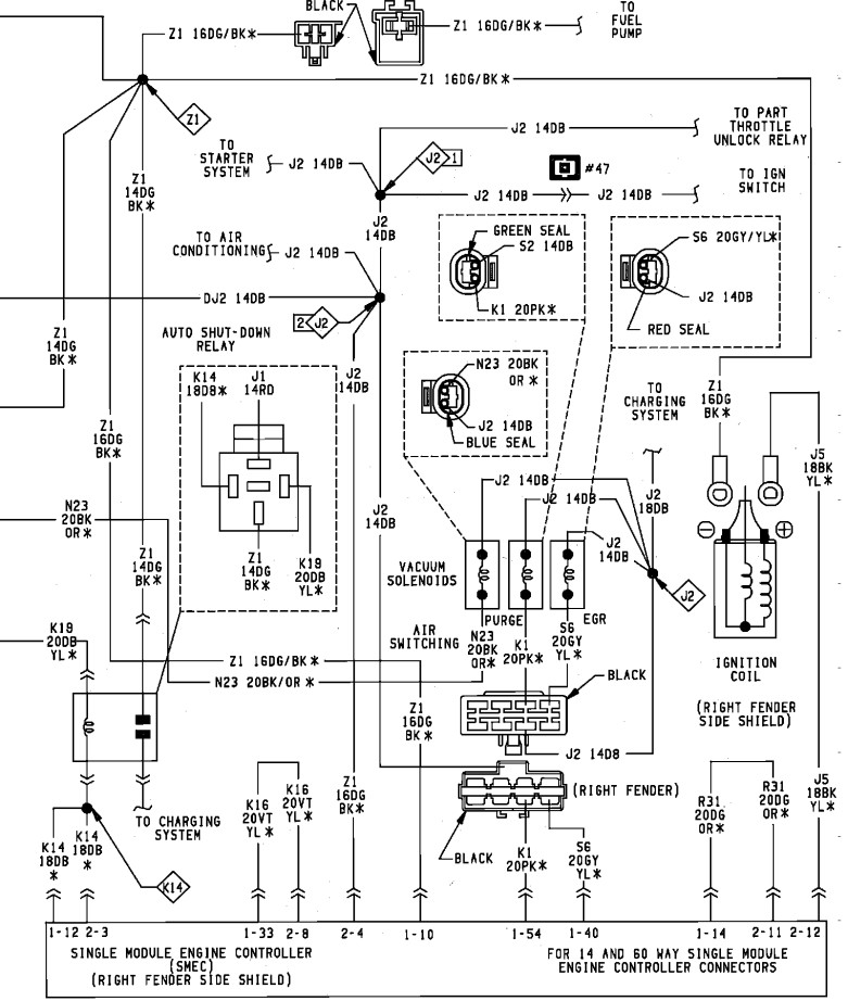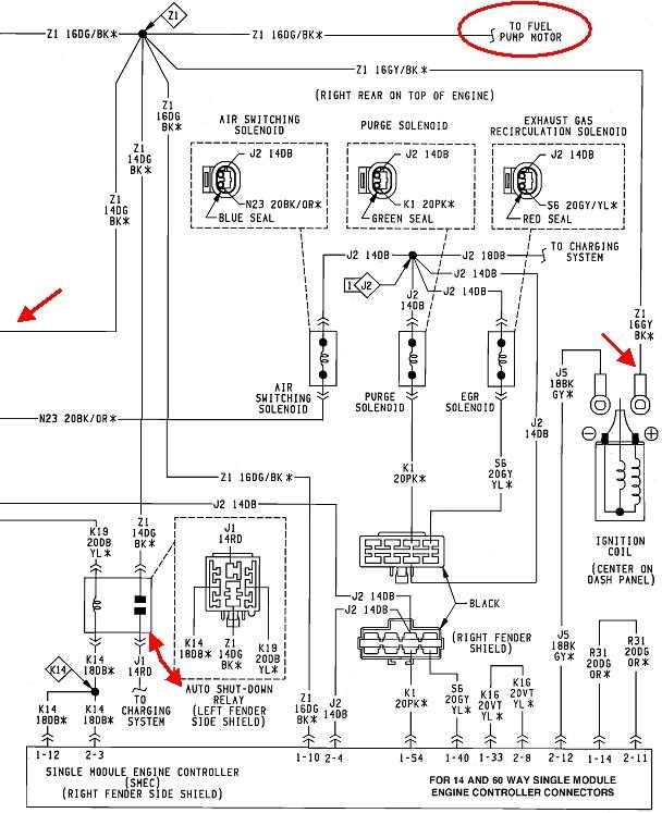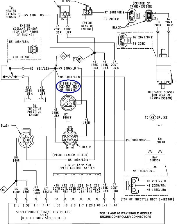 The most common cause of stalling while driving is a loss of fuel pressure and spark, but too many people get hung up on the first thing they find missing and forget to look for additional clues. If you look at the second diagram, you'll see the automatic shutdown, (ASD) relay feeds the ignition coil, injectors, and the fuel pump, along with a few other things. About 95 percent of stalling problems involve the ASD relay being turned off by the Engine Computer, and that is almost always in response to a loss of signal from, in this case, the Hall Effect pick-up assembly in the distributor. That's the flat disc under the rotor. It is of the same design that caused a lot of trouble in the 2.2 / 2.5L engines in the early front-wheel-drive cars. These sensors often fail by becoming heat-sensitive, then they work again after cooling down, usually for at least an hour.