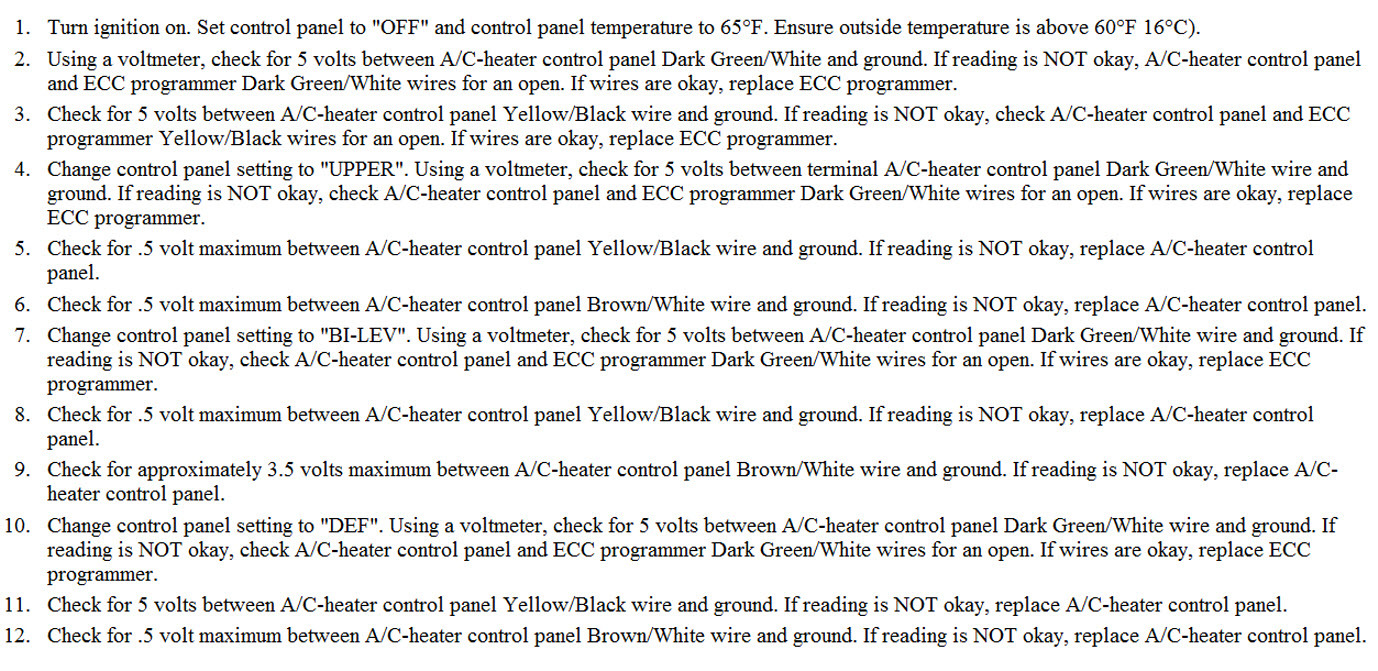 I have the nicer climate control heater/ac unit on this vehicle. Just replaced this climate control module because the fan wasn't working. Now fan working but no ac from the center vents(This was a problem I had before I replaced the climate control module). Cold air only comes out of the defrost or lower vents. Kind of annoying in the hot humid SC days when you want cold air on your face. Thanks guys. Any help/suggestions would be greatly appreciated. Robin from SC.