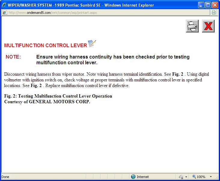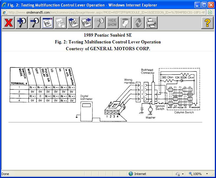 I posted how to test the switch when testing the switch make sure the key is in the run position.Also when they say make sure you do a continuity test before checking the switch they are talking about unplugging both the wiper motor and the wiper switch and with the key off make sure you have a connection from each terminal to the opposite connector.Just match the colors up when checking for a connection from the wiper motor connection to the wiper switch connector like orange and orange etc.Set the meter to the lowest ohms scale you have to test that.Let me know what you find.Also don't push your terminal tips on the meter into the terminals of the connectors to hold them in place or you will create a new problem a terminal tightness issue.