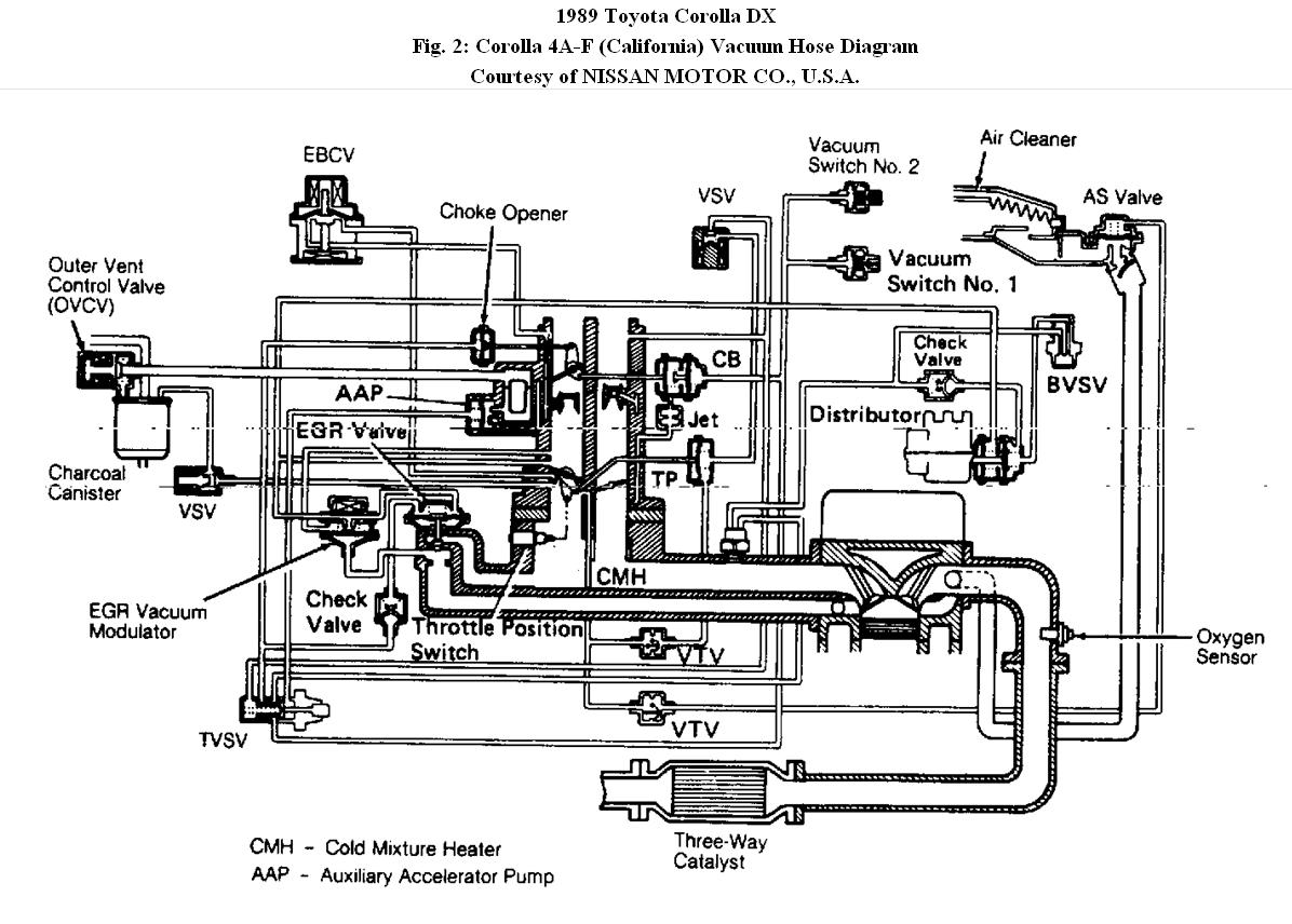 I have a Japanese made Toyota Corona GX 1989 MTM with 5AF engine. please help me to fix my vaccum hoses for Air Conditioning. Previously, Some one has removed and messed up with the hoses and now i'm having problems when car is ideling with AC on. i've got some diagrams of the vaccum hoses from the net for AC unit, but i'm not sure with some hoses which goes into the Carb.