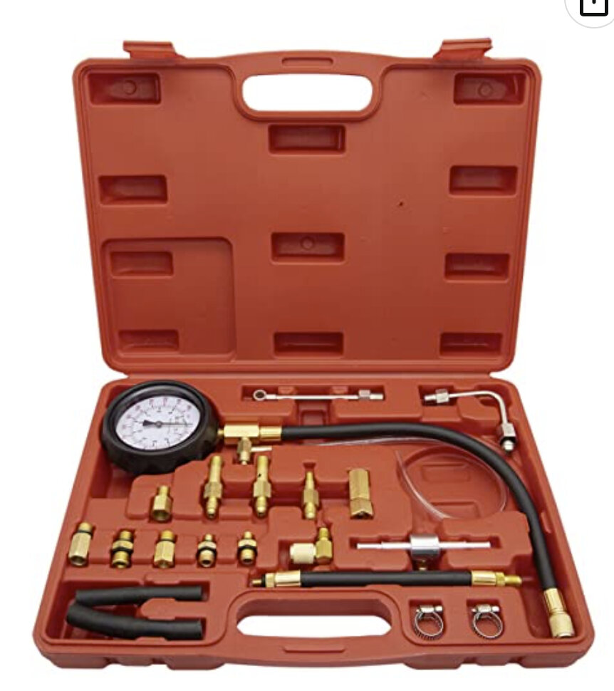 If you don't have a fuel pressure tester, you can rent one at your local auto parts store. Just keep in mind they get banged around and might not be as accurate. I have added a picture of one for you as well as a common Shrader valve.
