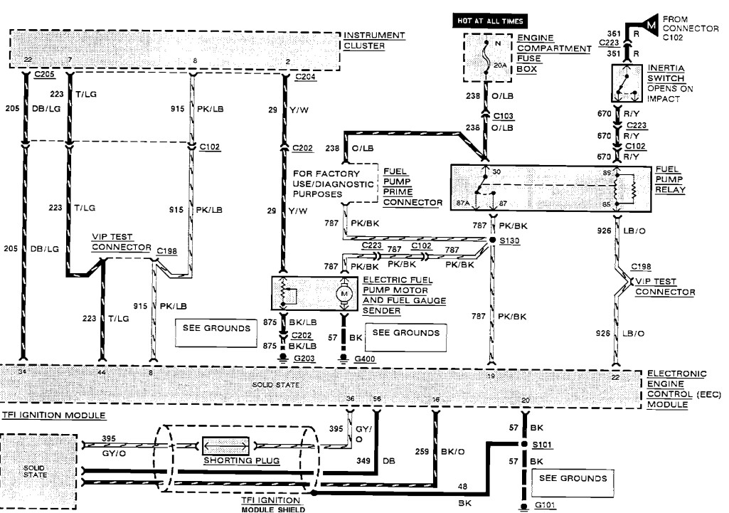 Next, put the relay back in the socket and carefully slide a jumper wire in alongside the terminal in the lower left of the drawing. (Sorry, I can't read the terminal number). There is also a test connector that you can ground if you can find it. If you can't find that connector, use the diagram below and use terminal 86, but verify first that there is no voltage on it before you pop the relay back in.