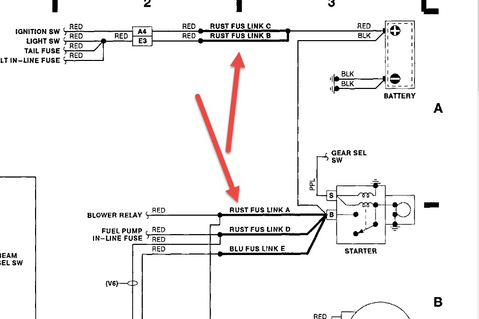 This black ground wire, goes from the front body, next to the radiator, towards the top but within the engine compartment on the passenger side, it runs down into the harness, along the frame rail and this goes right under the alternator and power steering pump.
