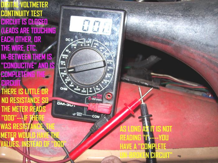 4) CONTINUITY......OF COURSE YOU WOULD PUT THE WIRE/ PART TO BE TESTED BETWEEN THE 2 PROBES